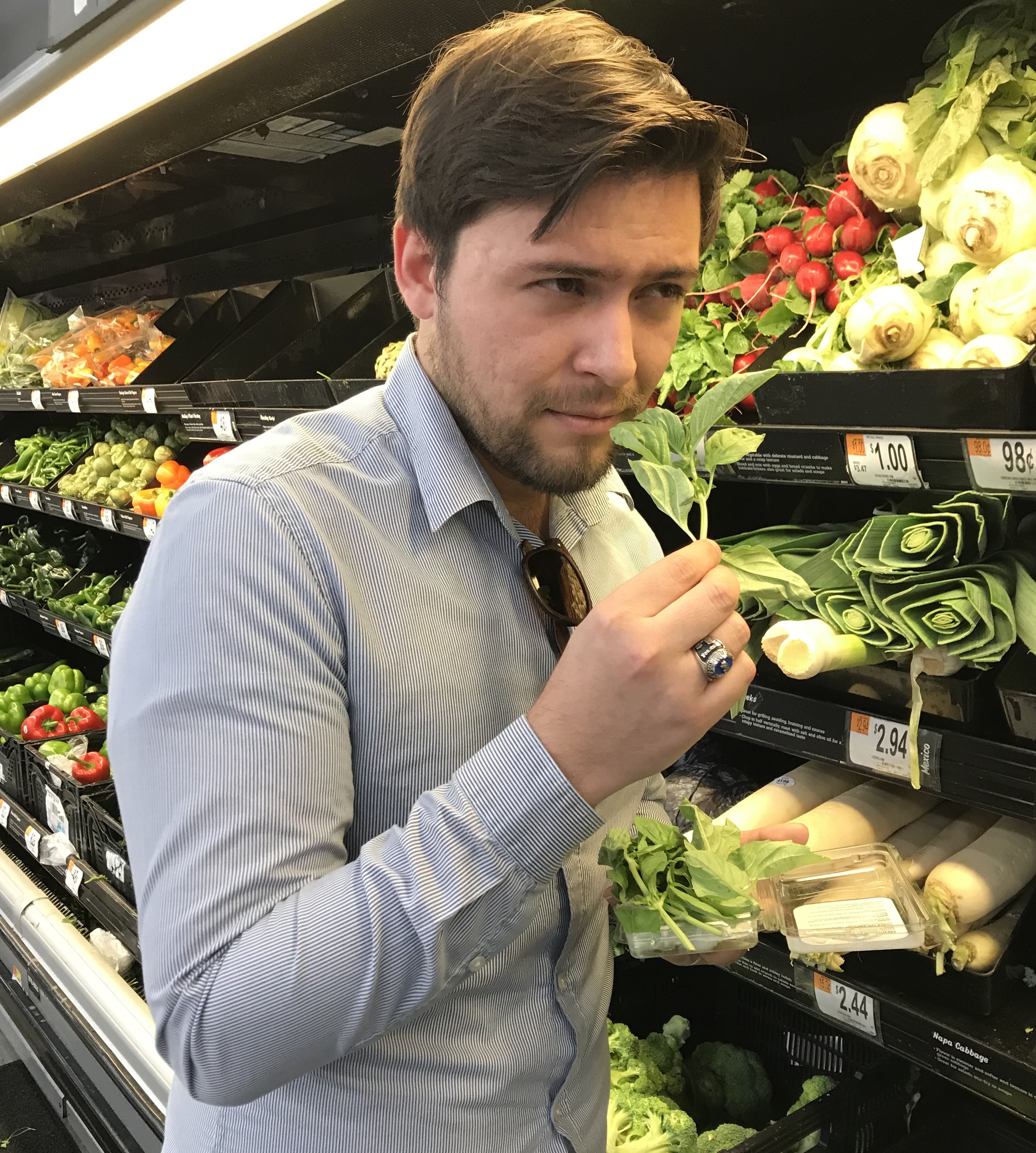 Ready to create the perfect pizza sauce with the perfect tomatoes, I proceeded to inspect the store’s basil for freshness, as pictured above. Satisfied with their selection, we moved on to the garlic, mozzarella, and other secret ingredients. It’s actually a rather simple recipe, but it is one that I’ve been developing since the mid 2000’s.