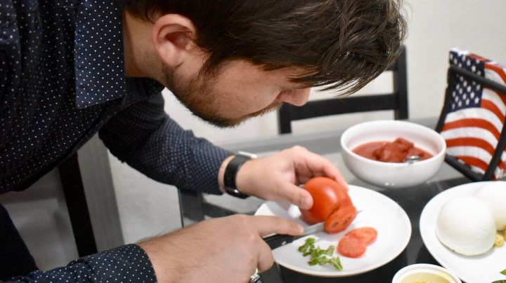 With just enough time for the pizza to bake, I place it in the oven and hope that the risks pay off. I stare at my pie through the oven window as the crusts begin to turn golden brown. The clock keeps ticking. I look at the pie, then at the clock, and back to the pie. We are down to the last few minutes. I open the oven door, confirm it is cooked, and take the pie out. “60 seconds remaining,” I hear the judges say. I briefly let the pizza cool down before plating. “5, 4, 3, 2, 1, hands up!” they shout.