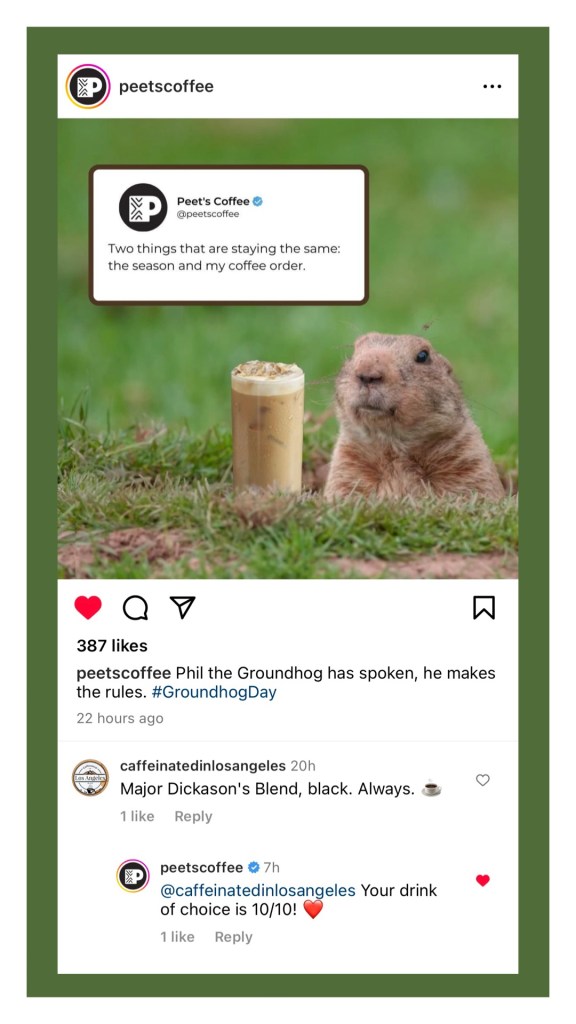 With this context in mind, I noticed that my favorite coffee brand Peet’s Coffee took to Instagram to join in on the fun! So I commented with one of my absolute favorite cups of all time: Peet’s Major Dickason’s Blend, black.